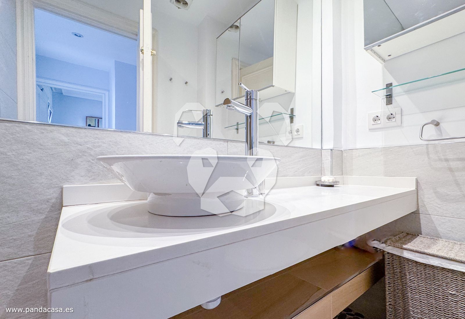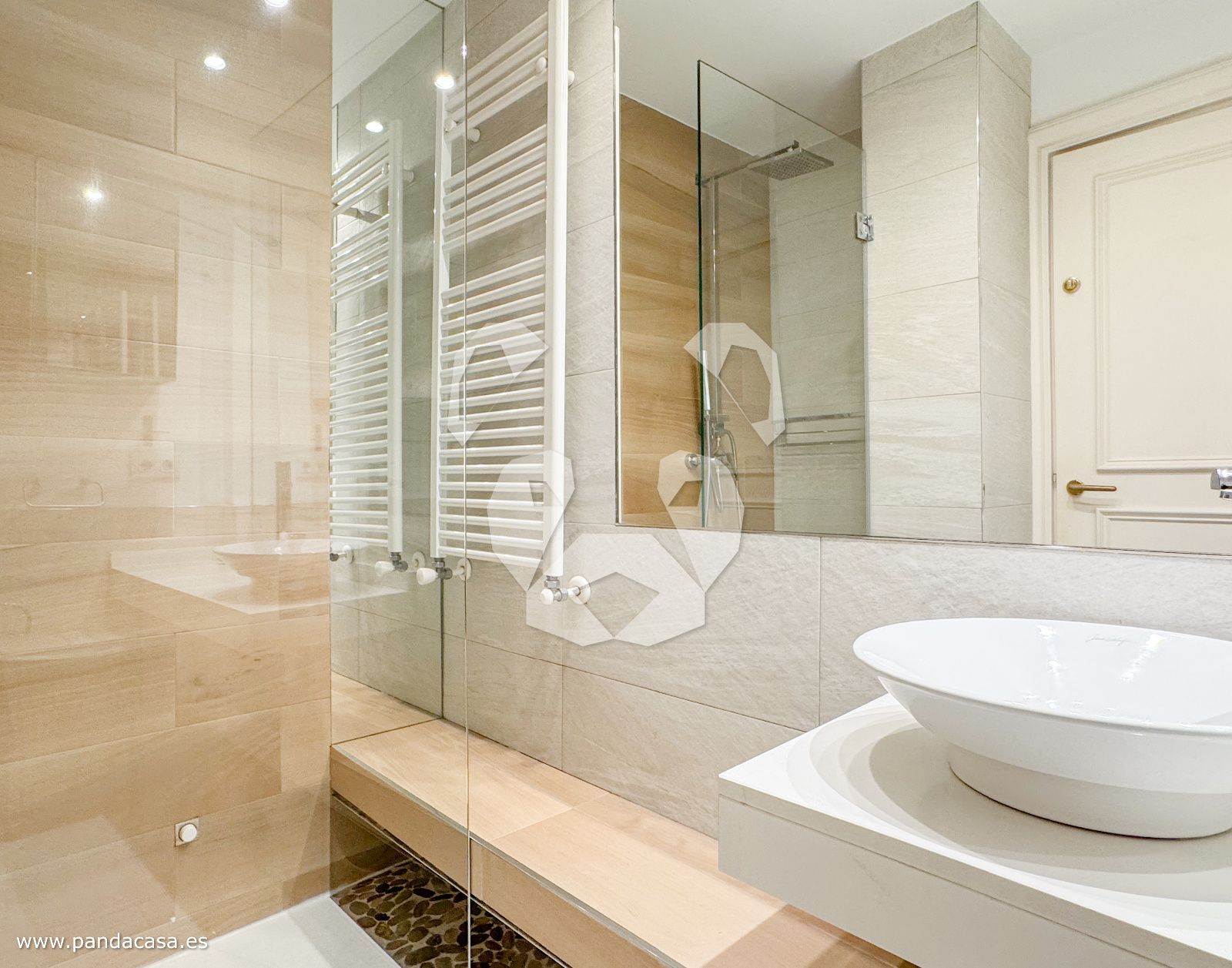El baño, recientemente reformado, cuenta con una amplia ducha y acabados de calidad. El piso también dispone de aire acondicionado por conductos en todas las estancias, calefacción y agua caliente central para tu máxima comodidad. Los suelos de parquet de roble, junto con las ventanas termo-acústicas Climalit, proporcionan un excelente aislamiento térmico y acústico, asegurando un ambiente tranquilo y confortable. Recién pintado y en perfecto estado, este piso es una opción ideal para quienes buscan un hogar exclusivo en una de las mejores ubicaciones de Madrid. El edificio, con ascensor y portero, ofrece todas las comodidades necesarias para una vida cómoda y segura. ¡No dejes pasar esta oportunidad única!