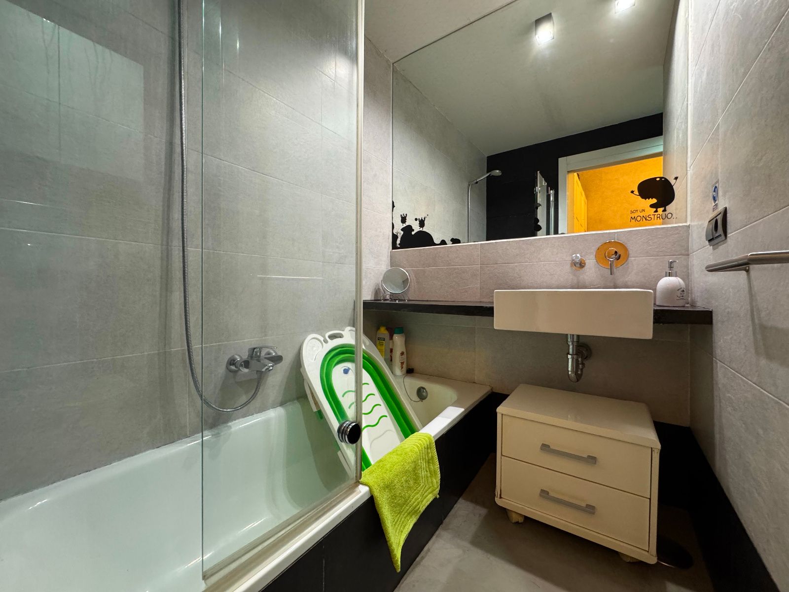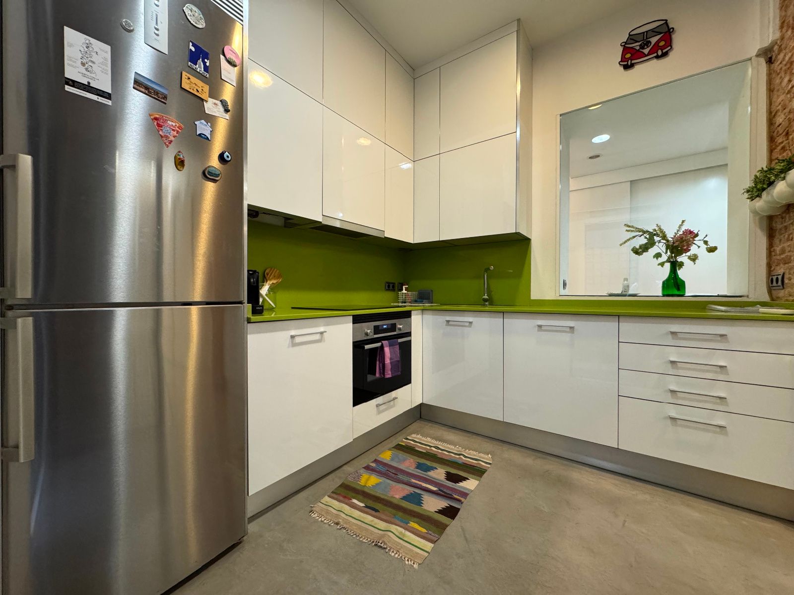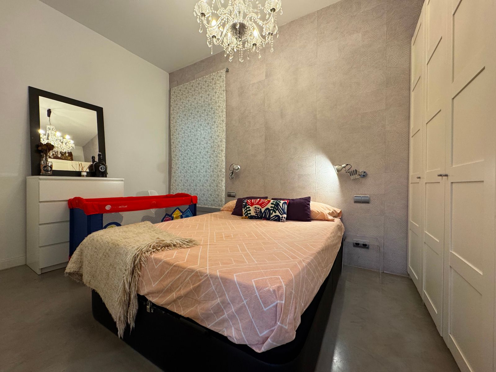 La vivienda, completamente amueblada y equipada, cuenta con dos habitaciones, salón-comedor, cocina independiente, baño completo, aseo y un patio interior de uso privativo. Se trata de un bajo muy luminoso gracias a sus grandes ventanales a distintos patios, que permiten la entrada de luz natural y una ventilación cruzada ideal. Todo el perímetro está perfectamente aislado, lo que garantiza tranquilidad en pleno centro. Reformada recientemente con un estilo moderno y cuidado, destaca por sus acabados en microcemento, paredes de ladrillo visto y cocina panelada con electrodomésticos de primeras marcas. Tiene calefacción por suelo radiante (gas natural) y aire acondicionado. El dormitorio principal incluye cama doble y baño en suite. El segundo dormitorio cuenta con cama nido (dos individuales) y armarios amplios. El salón es amplio, con sofá esquinero hecho a medida, estantería y espacio para relajarse o trabajar desde casa. La cocina está totalmente equipada y conecta con un acogedor patio interior. Se entrega con todo el menaje necesario para entrar a vivir.