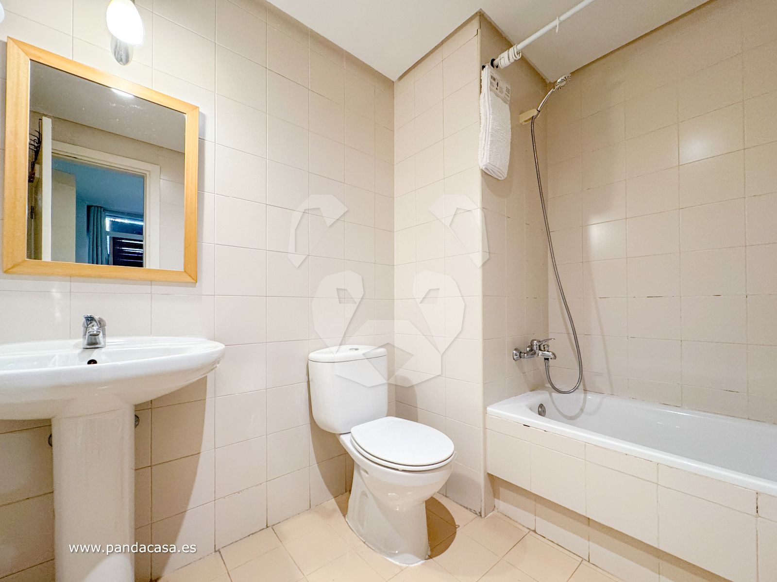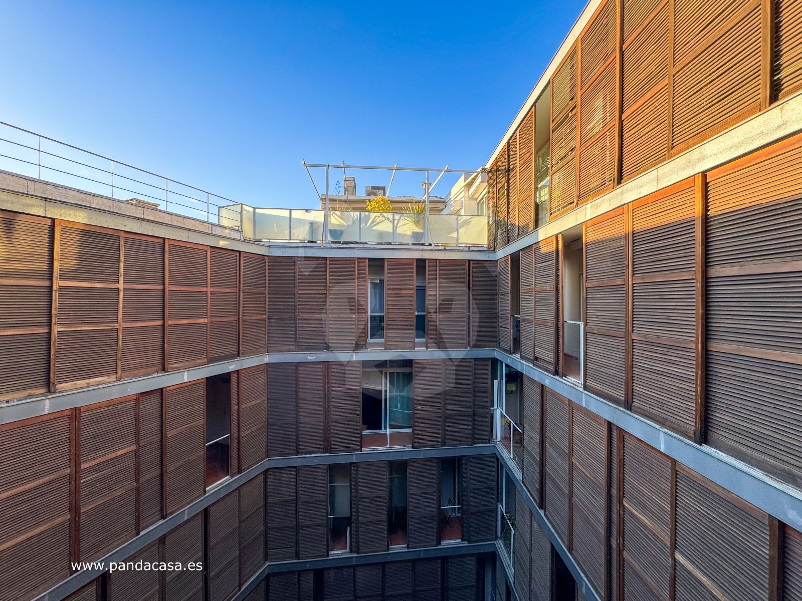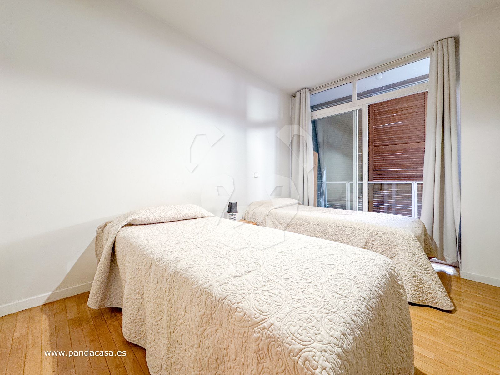 Con 81 m² muy bien distribuidos, dispone de 2 dormitorios con salida a terraza y 2 baños completos (uno en suite). El dormitorio principal cuenta con dos camas que pueden unirse como doble. Amplio salón-comedor con acceso a una terraza techada orientada al noroeste, con vistas al patio interior del edificio y abundante luz natural. Cocina independiente totalmente equipada, aire acondicionado, calefacción a gas, armarios empotrados y mobiliario completo listo para entrar a vivir.