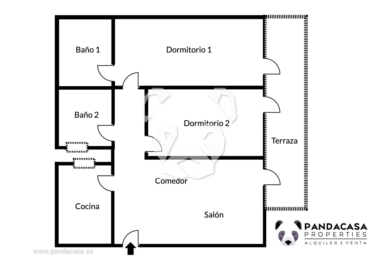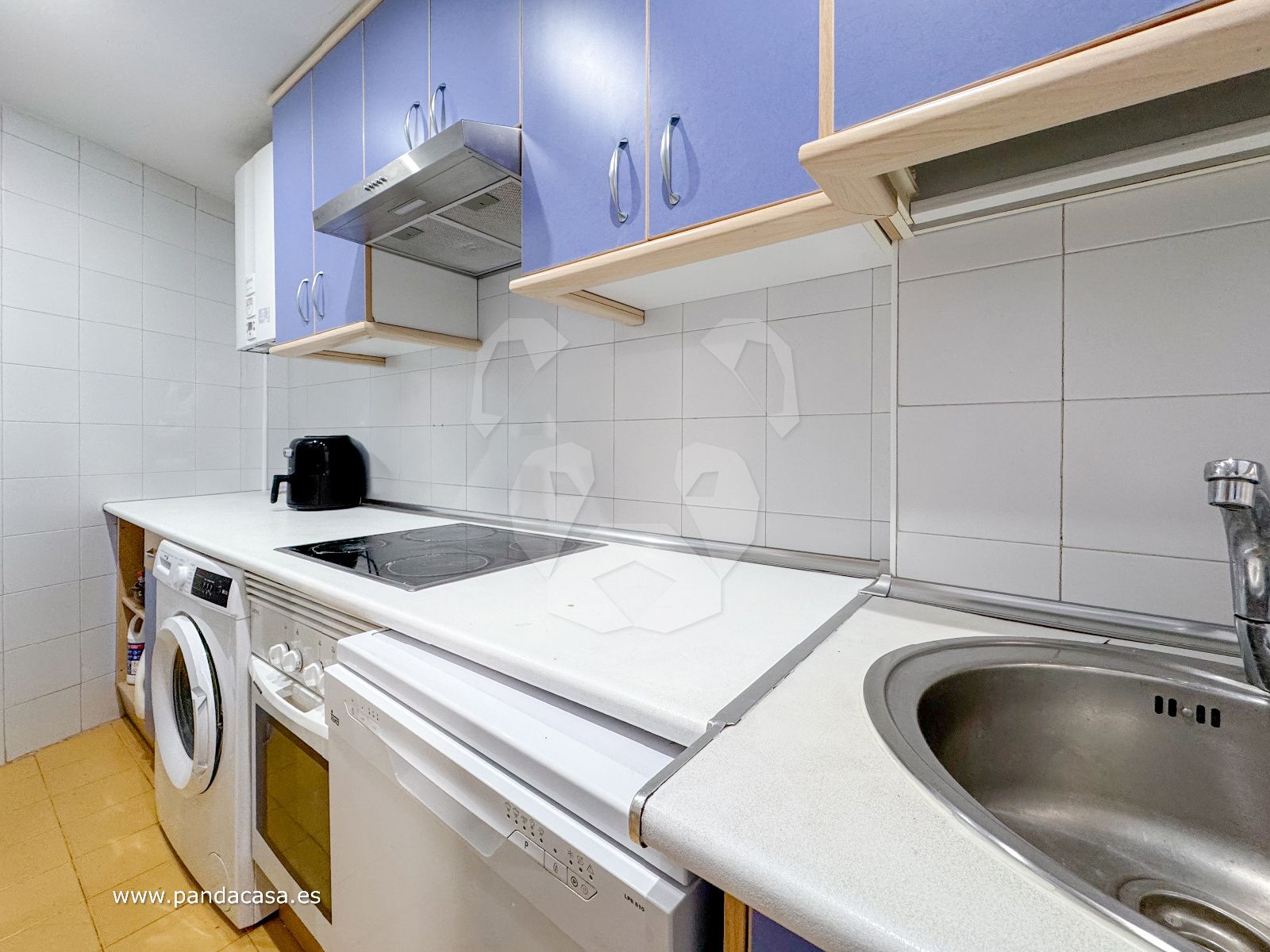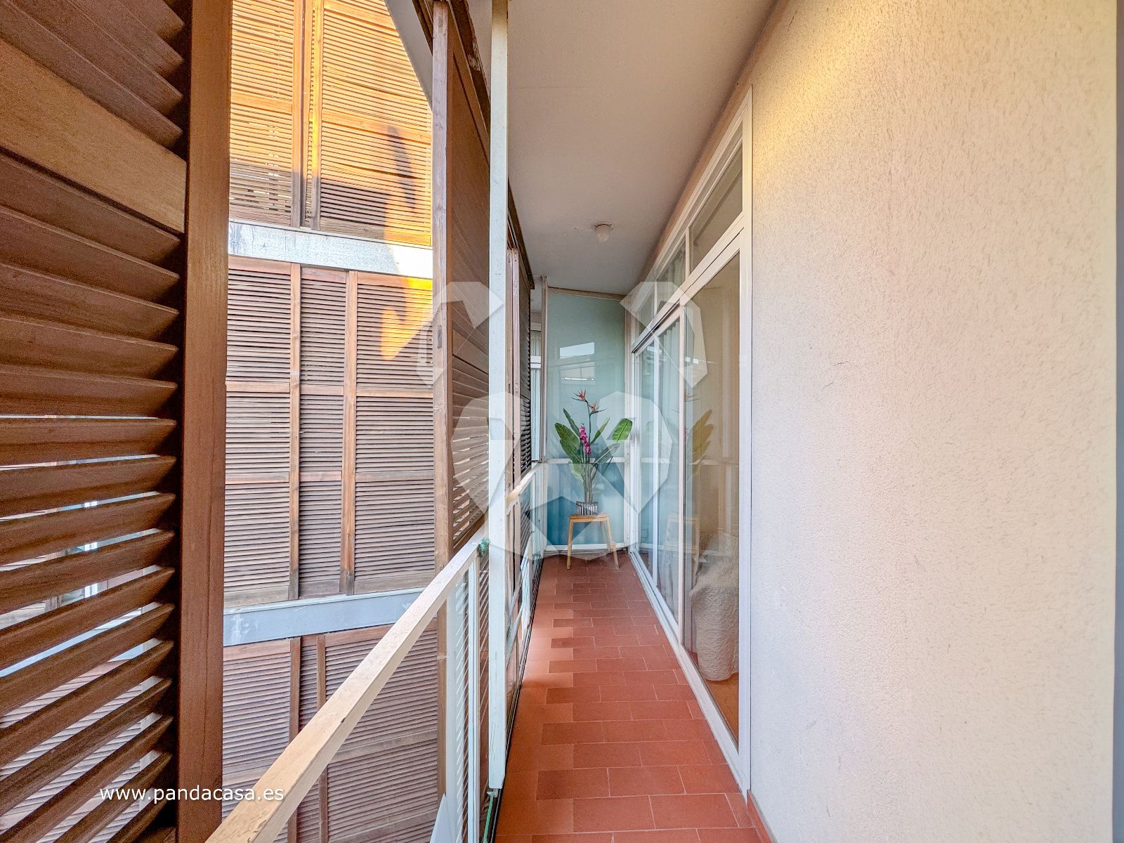 Con 81 m² muy bien distribuidos, dispone de 2 dormitorios con salida a terraza y 2 baños completos (uno en suite). El dormitorio principal cuenta con dos camas que pueden unirse como doble. Amplio salón-comedor con acceso a una terraza techada orientada al noroeste, con vistas al patio interior del edificio y abundante luz natural. Cocina independiente totalmente equipada, aire acondicionado, calefacción a gas, armarios empotrados y mobiliario completo listo para entrar a vivir.
