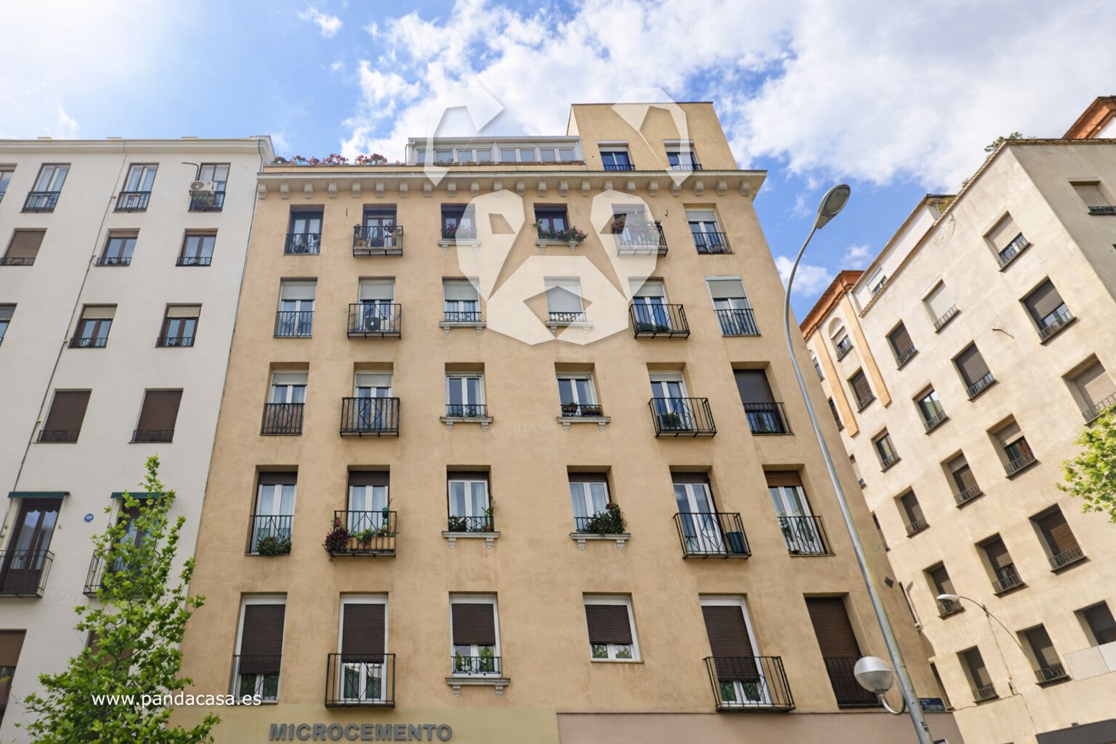 Piso de 52 m² en Madrid, totalmente amueblado y listo para habitar. Dispone de un dormitorio, salón-comedor amplio, cocina equipada y baño completo. Está ubicado en un edificio con fachada clásica y ascensor, y cuenta con aire acondicionado frío/calor.