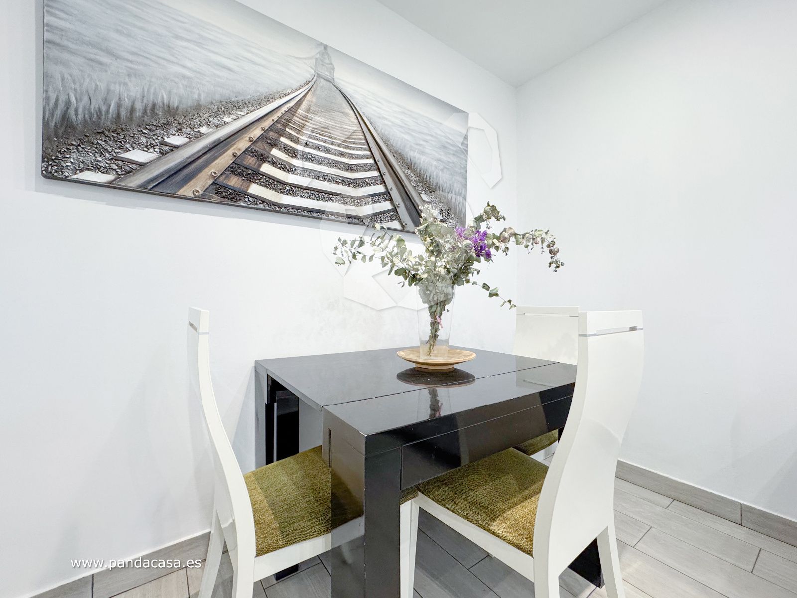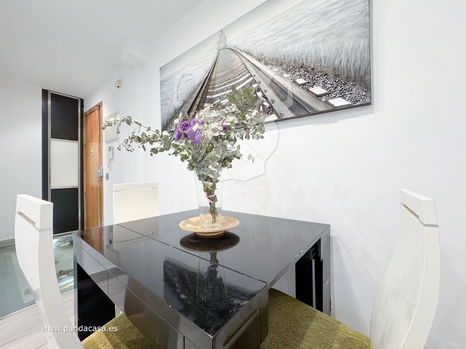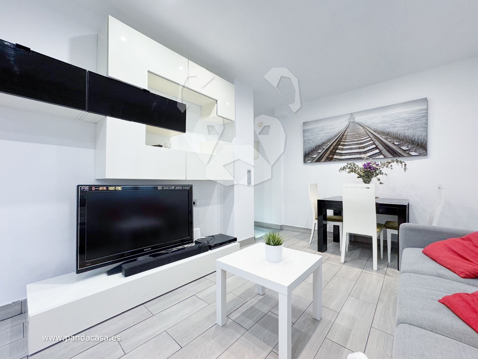 Aquí el día a día fluye. El dormitorio principal es amplio, luminoso y perfectamente equipado: cama doble con canapé, gran armario empotrado y TV. El segundo dormitorio suma versatilidad: cama individual, armario y escritorio. Ideal para teletrabajar, estudiar o adaptarlo a tu estilo de vida. El salón es el corazón de la vivienda. Espacioso, acogedor y con orientación sur, disfruta de una excelente luz natural durante todo el día. Cuenta con sofá cómodo, TV y mesa extensible para hasta 8 personas. Un espacio pensado tanto para desconectar como para disfrutar en compañía. La cocina independiente destaca por su funcionalidad real: moderna, completamente equipada, con lavadora y secadora, además de barra con taburetes que aporta practicidad en el día a día. El baño, amplio y actualizado, incorpora ducha efecto lluvia. La vivienda dispone de calefacción central de gas, garantizando confort todo el año. Aunque es interior, sorprende por su buena luminosidad en todas las estancias y una ventilación agradable. Planta baja cómoda, con patios de luz que aportan tranquilidad y silencio.
